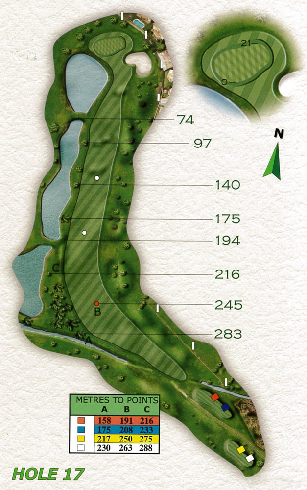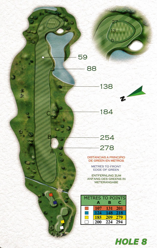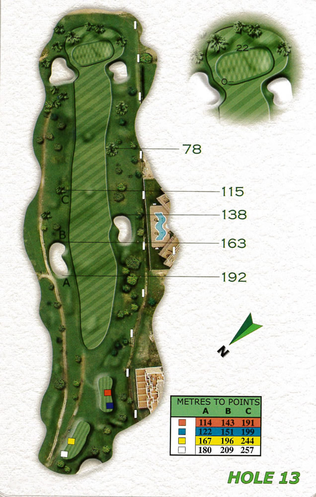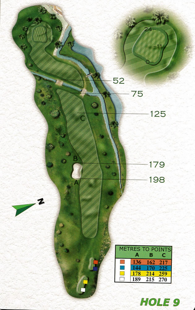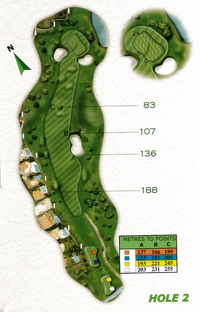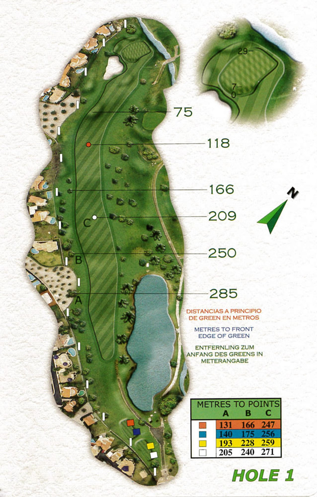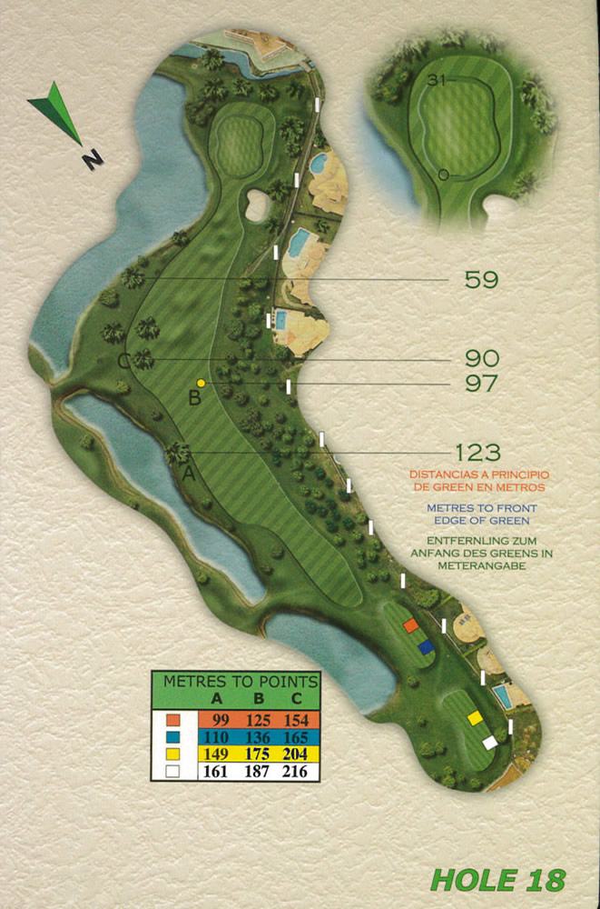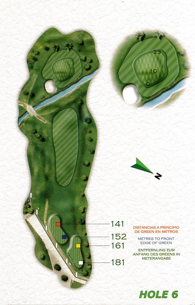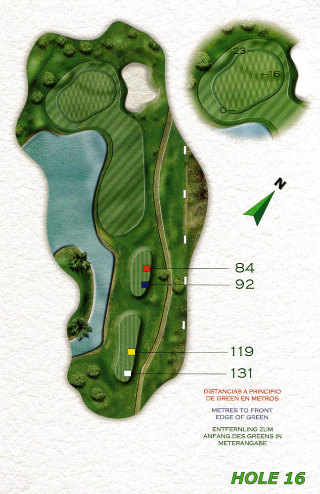 Diseñado por Severiano Ballesteros en 1995, ocupa unas 50 has. de calles anchas, greens suavemente ondulados y obstáculos de agua que determinan la estrategia de juego.