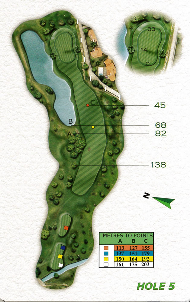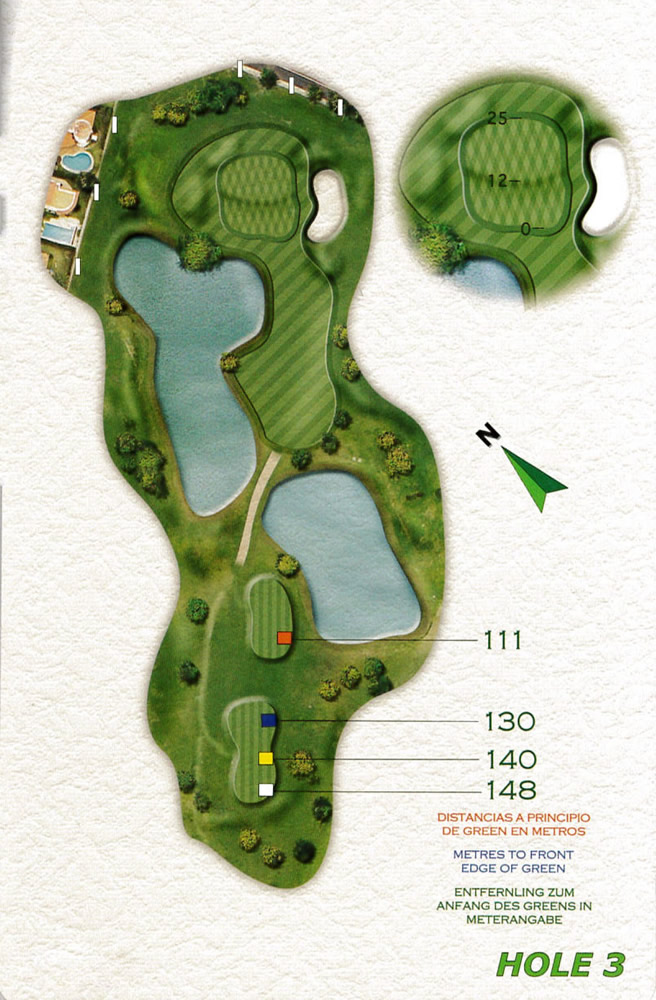 Para el juego corto y el trabajo de "approach", le recomendamos que utilice nuestro campo de 5 hoyos par 3. Los hoyos tienen una longitud de entre 50 a 90 metros y son ideales para mejorar el "pitch" y el "putting", que tan importantes son en el juego.